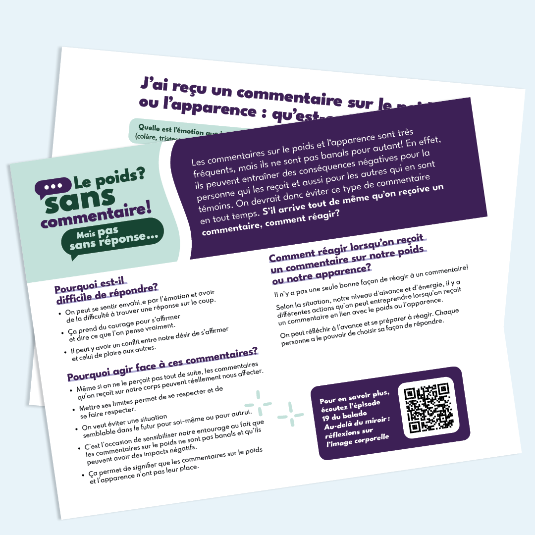 Avec nos invités experts, ce balado remet en question les fausses croyances entretenues par la culture des diètes, aborde toute la complexité du lien entre le poids et la santé et offre des conseils bienveillants pour aider les gens à voir leur corps… au-delà du miroir!